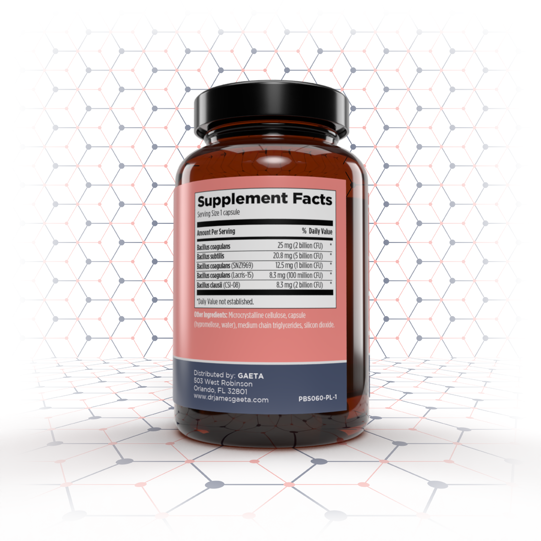 Spore-Based Probiotic+ is an industry-leading broad-spectrum, targeted, spore-based probiotic used to optimize gastrointestinal (GI) health. Spore-based strains such as Bacillus are vital to the food chain, as they have the intrinsic ability to produce a multitude of enzymes, secretory proteins, antimicrobial compounds, vitamins, and carotenoids.